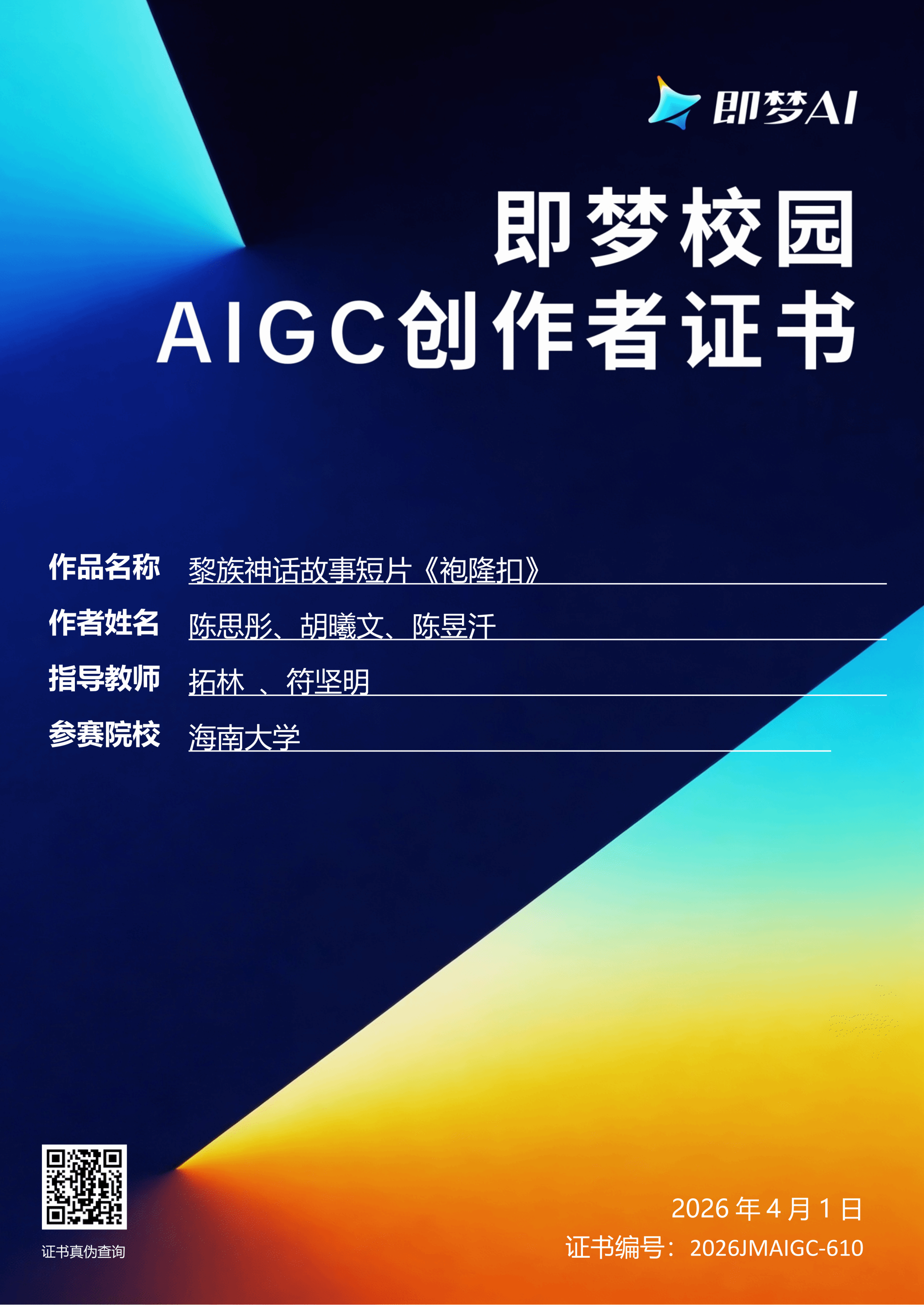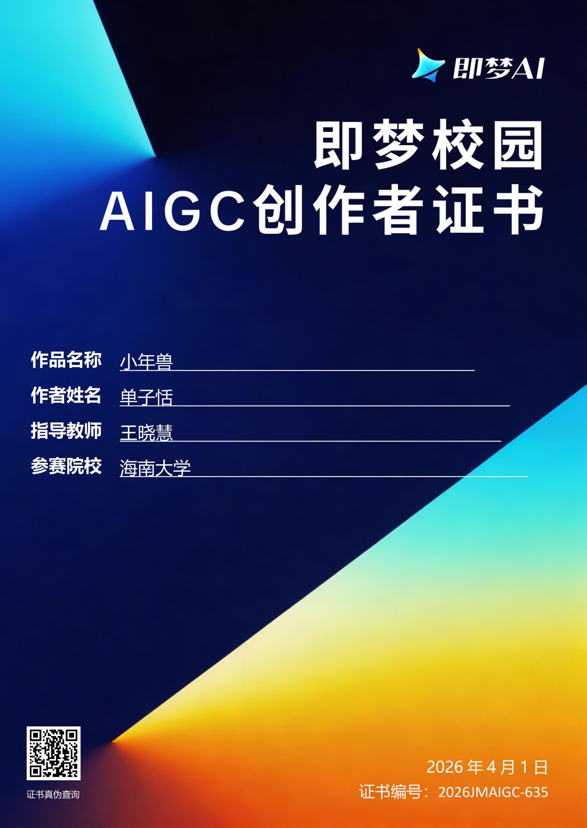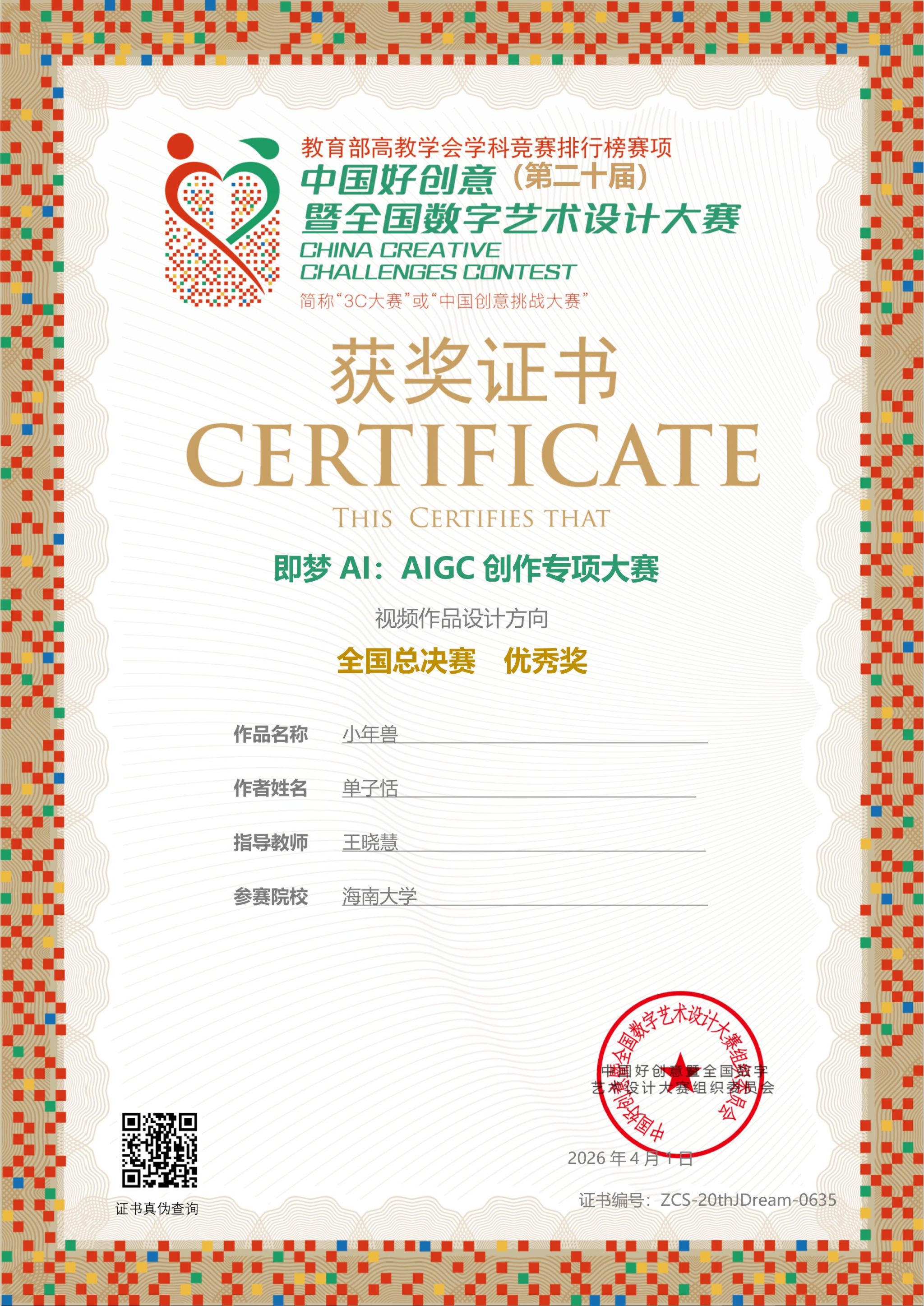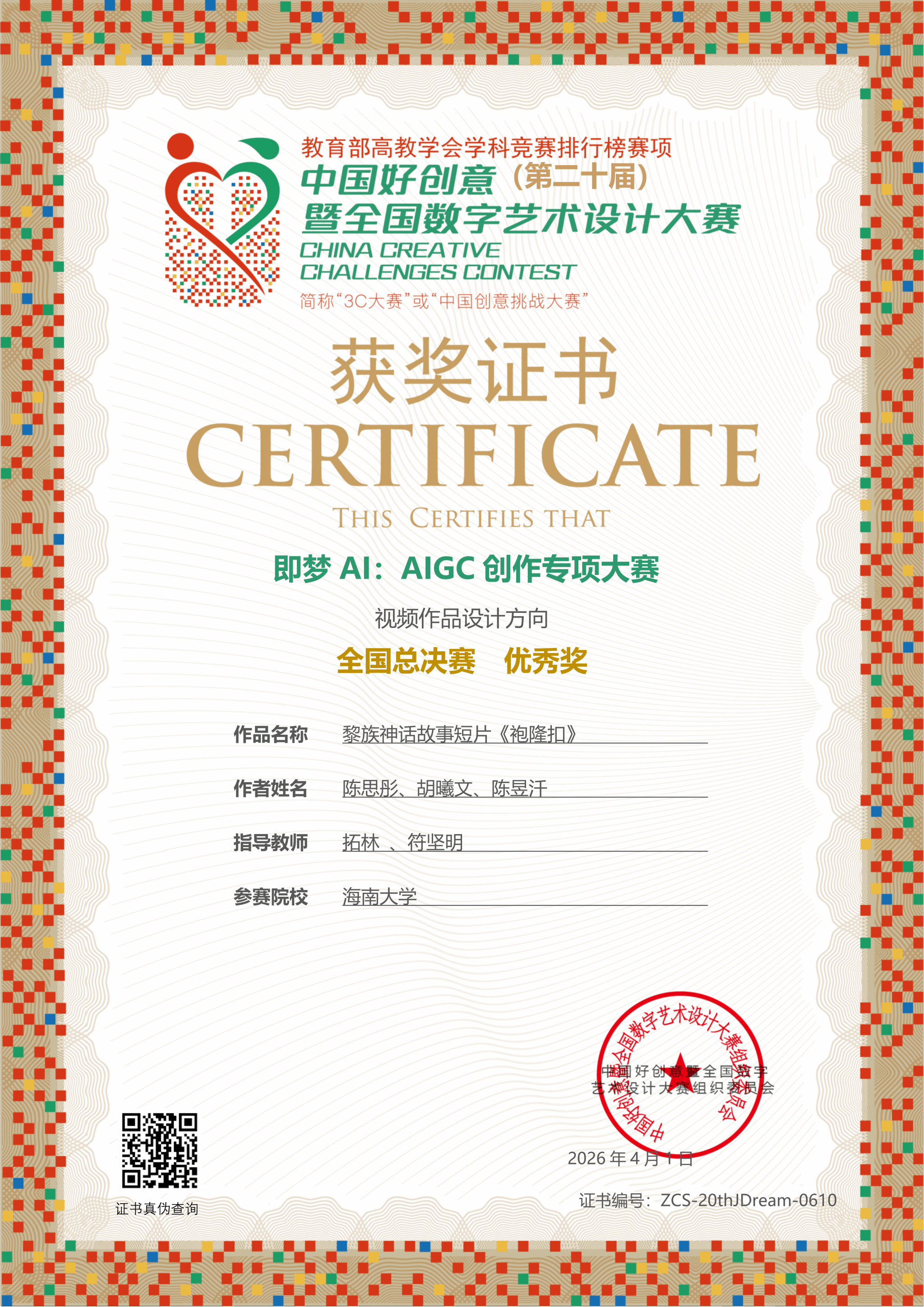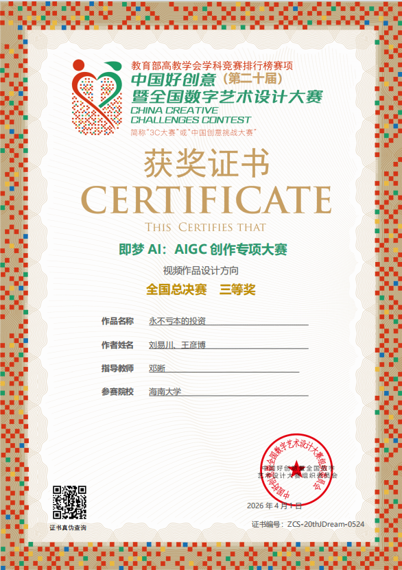 【喜报一】2026年4月1日在中国好创意暨全国数字艺术设计大赛第20届“即梦AI:AIGC创作专项大赛”中,秘密花园