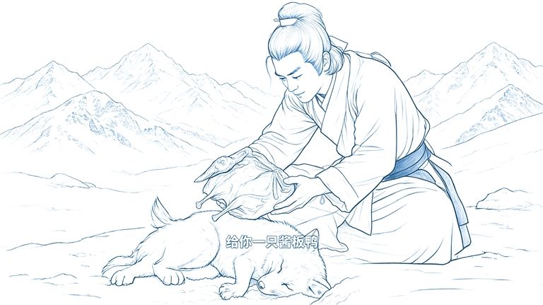 今年2月,贵州一家公司为宣传旗下风味酱板鸭,借助AI工具创作短剧《雪山救狐狸》。该剧采用邵氏经典电影画风,用AI解构传统,对“狐仙报恩”的经典叙事进行反转改编。原本“樵夫救白狐,白狐来报恩”的故事情节,被改成“樵夫在雪山上用酱板鸭救白狐,没想到酱板鸭最后化身人形、上门找樵夫复仇”。